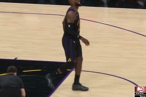 GIF-詹姆斯上篮落地一瘸一拐